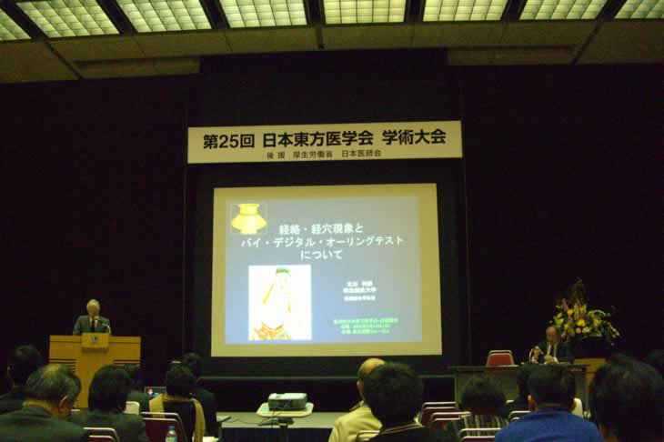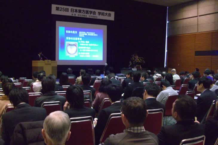 2008年(平成20年)2月17日(日)に、東京都千代田区の東京国際フォーラムにおいて第25回 日本東方医学会が開催されました。大会会頭は、明治鍼灸大学教授北出利勝医学博士です。日本東方医学会は、1973年に医師のための針灸セミナー修了者を中心として医師東洋医学研究会 (MSA会)(会長 間中喜雄 ) を発足させ、1983年に改名した歴史ある学会です。近代・現代医学に基づいた医療に鍼灸治療を導入する医師が増えています。日本は、確実に理想的な医療体制の形成作りに動いています。世界の医療体制は、鍼灸治療が世界一である日本がモデルになることを予感します。 |