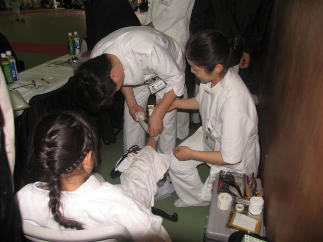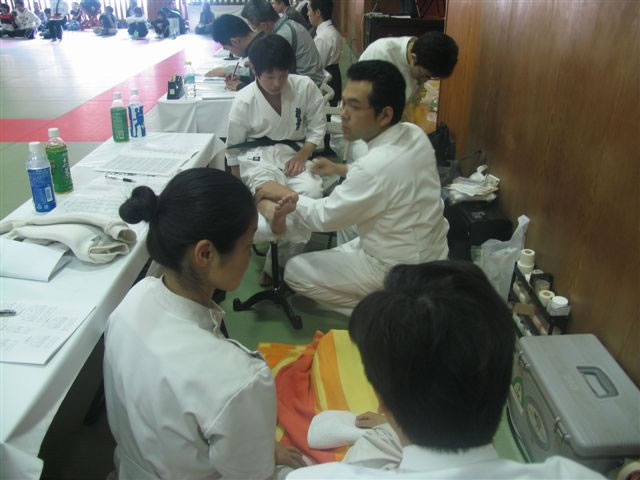 2008年(平成20年)4月27日(日)に、極真会館増田道場が主催する空手道大会の「医療スタッフ」を担当いたしました。 当院は、各種武道・スポーツの医療スタッフを20年来続けております。空手道・柔道・剣道・合気道や野球・ソフトボール・バレーボール・バドミントン・卓球・インディアカ・サッカー・テニス等の救急活動を通じて、東洋医学への理解と東洋医療の効果を確認いただいております。外傷直後に処置を行うことは、治癒に至る期間の短縮に激甚です。怪我をしたら、6時間以内にお近くの接骨院・整骨院、鍼灸院で是非診療を受けてください。 |