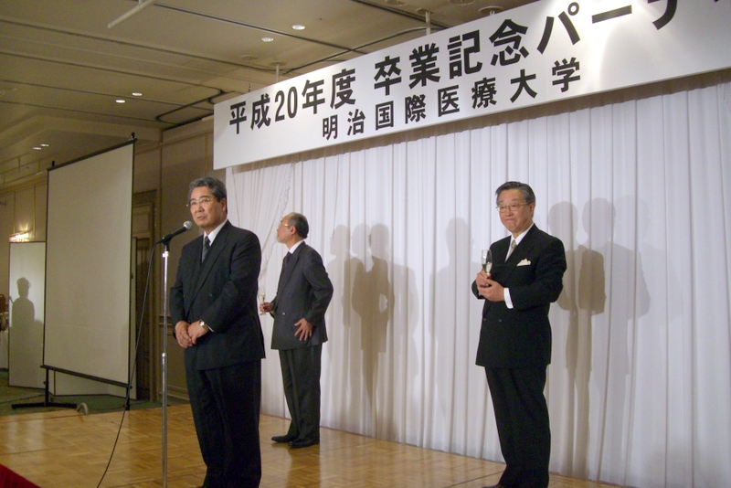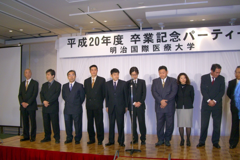 2009年(平成21年)3月13日(金)に、京都府京都市・京都ホテルオークラにおいて第23回明治国際医療大学鍼灸学部同窓会「たには会」入会式・第5回柔道整復学部同窓会「やわらぎ会」入会式および卒業記念パーティーが開催されました。母校の校名が明治鍼灸大学から変更されて始めての入会式です。鍼灸学部鍼灸学科97名、保健医療学部柔道整復科33名(第2回卒業生)、鍼灸学研究科修士課程13名、博士課程4名が同窓会正会員になりました。当院院長は、たには会副会長として出席しました。 |