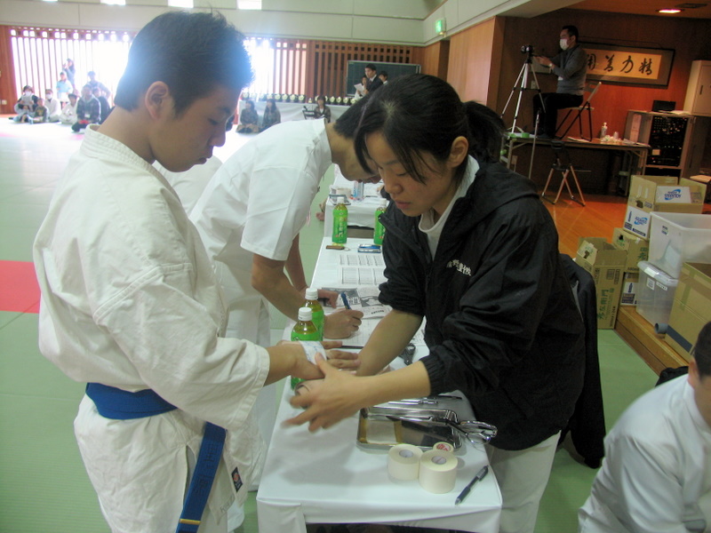 2009年(平成21年)4月5日(日)に、極真会館増田道場が主催する空手道大会の「医療スタッフ」を担当いたしました。 当院は、各種武道・スポーツの医療スタッフを20年以上続けております。柔道整復術は、骨折・脱臼・捻挫・打撲・肉離れという急性期の外傷に対し徒手だけで対応する外科手術です。受傷直後に処置を行なうことにより、打撲なら3~4日、捻挫・脱臼・肉離れは約1週間で治癒することが可能です。骨折は2週間以上治療期間を短縮することが可能となります。また、鍼灸治療は、急激に発症した痛みに対し即座に痛みを消失することが可能な医療です。意識を失ったり、呼吸困難になった際の蘇生法にも用いられます。東洋医療は、9割以上の病気に対応可能な医療です。緊急を要する病態に陥ったときは是非お近くの鍼灸院・接骨院にご相談ください。 |