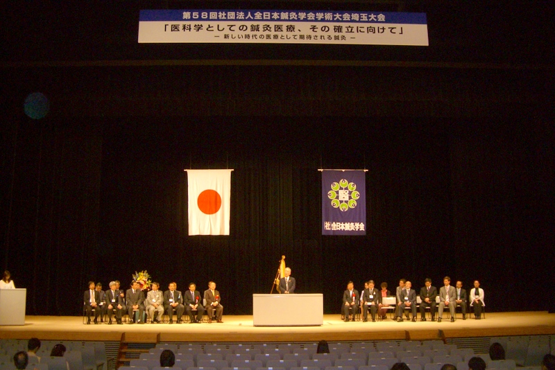 2009年(平成21年)6月12日(金)〜6月14日(日)に、埼玉県大宮市・大宮ソニックシティで、「第58回全日本鍼灸学会学術総会」が開催されました。実行委員長は明治国際医療大学同窓生の小俣浩医学博士です。3000人を越える参加者の中、「医科学としての鍼灸医療、その確立の向けて」をテーマに様々なことが話し合われました。当院院長は、3年連続「いの一番」に論文発表し、世界で一番進歩している日本の鍼灸治療について自説を展開いたしました。 |