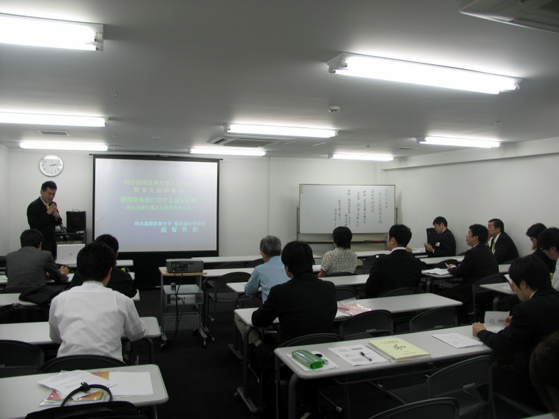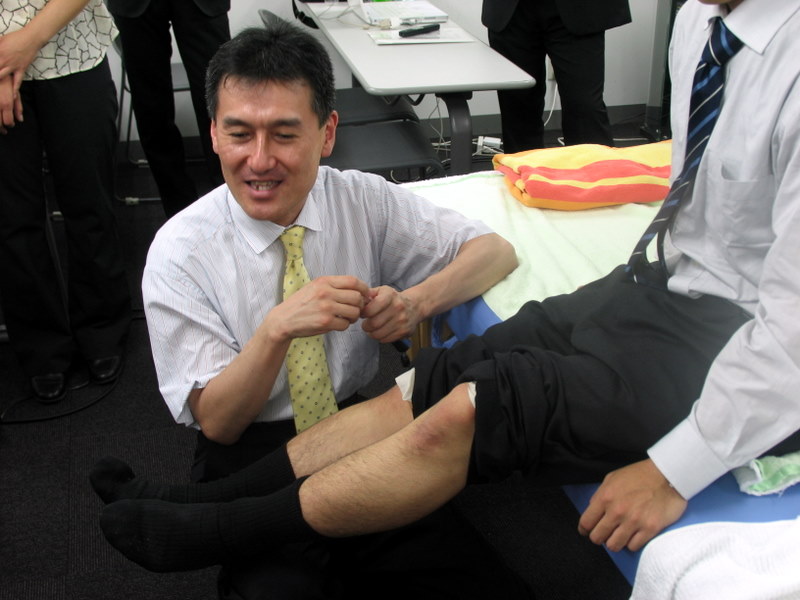 2009年(平成21年)6月28日(日)に、東京都渋谷区・T's渋谷アジアビル会議室B101にて、「第44回たには会関東支部研修会」が開催されました。 たには会会員である明治国際医療大学准教授越智秀樹先生による「膝関節疾患に対する鍼灸治療ー鍼灸治療の適応と限界を考えるー」と題した講演が実技を交えて行われました。臨床にすぐ活かすことができる内容に会員諸君は引き込まれ、あっという間に過ぎ去った3時間でした。膝関節疾患に対し、鍼灸治療がもっとも優位な医療であることが多いことを実感しました。 |