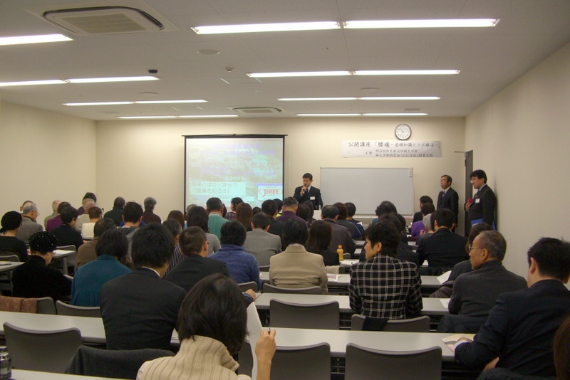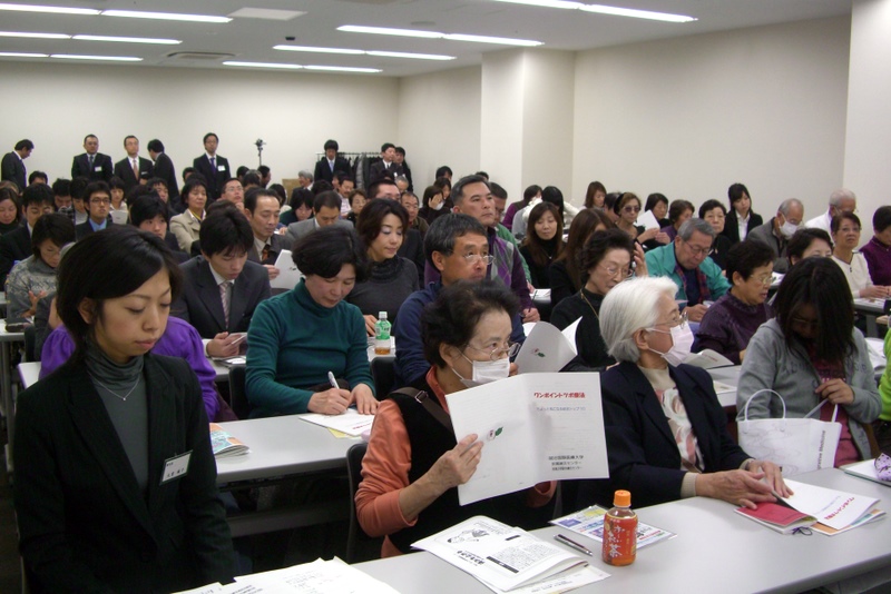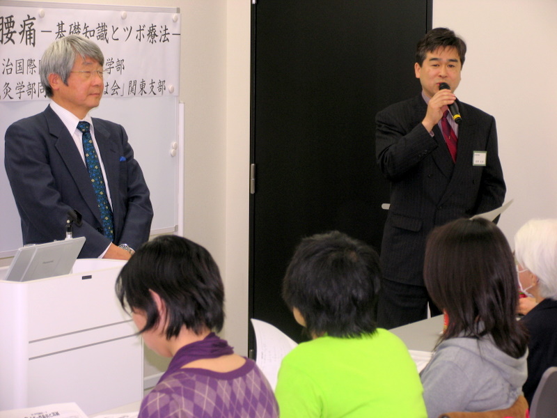 2009年(平成21年)12月6日(日)に、東京都渋谷区・T’sフラッグ渋谷にて、当院スタッフの母校である明治国際医療大学鍼灸学部主催、鍼灸学部同窓会関東支部後援による公開講座が開催されました。「鍼灸治療の良さや適応、鍼灸師という仕事(役割)を広く市民に理解してもらい、鍼灸治療を通じて市民の健康増進に役立てていただくこと」を目的とした講座です。演題は、「腰痛とはり・きゅう」でした。公開講座を開始してから10年経過しましたが、これまでは、大学がある京都地区のみでの開催でした。東京で始めての開催とあって、100名収容の会場は満杯でした。世界最先端の教育・研究機関である母校の講演内容は、鍼灸治療に対する関心が高い東京地区在住者の期待に応えることができたのではないかと感じた1日でした。 |
