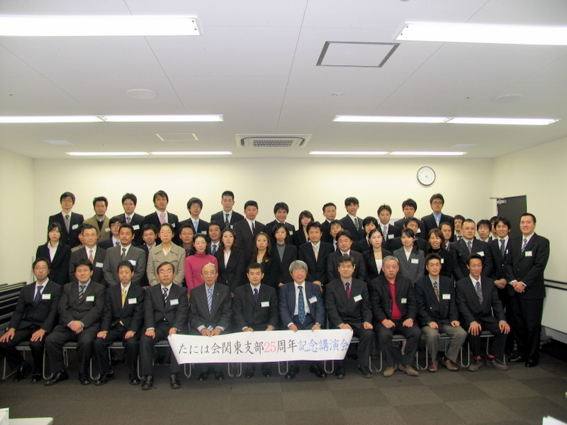 2009年(平成21年)12月6日(日)に、東京都渋谷区・T’sフラッグ渋谷にて、明治鍼灸短期大学・明治鍼灸大学・明治国際医療大学鍼灸学部および明治国際医療大学大学院同窓会「たには会」関東支部設立25周年記念講演会が開催されました。会員は400名を越え、開業者も約100名となりました。関東地区の国民医療に貢献する先生たちが集い、近年の医療を取り巻く変容に対応するための情報交換を行ないました。 |