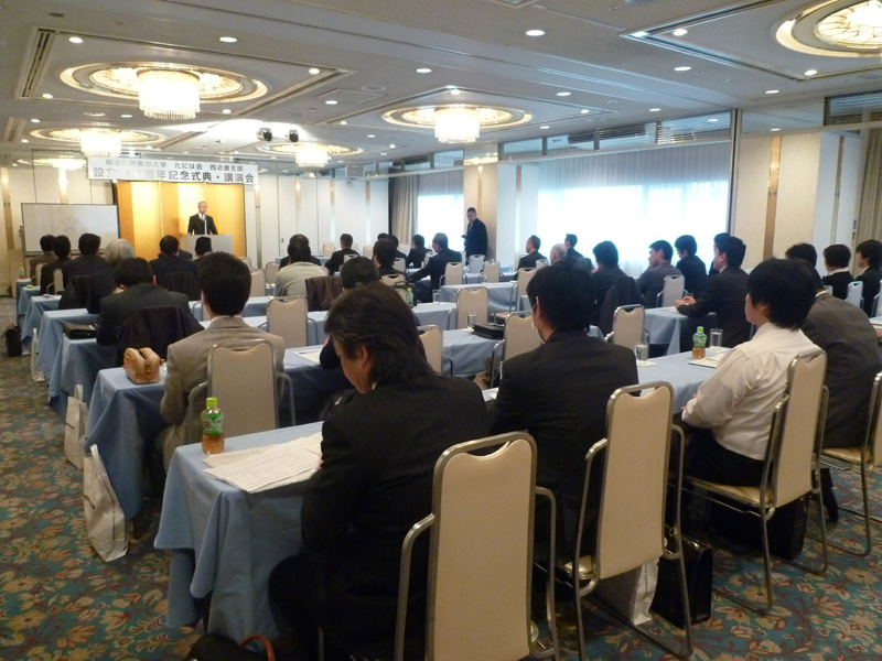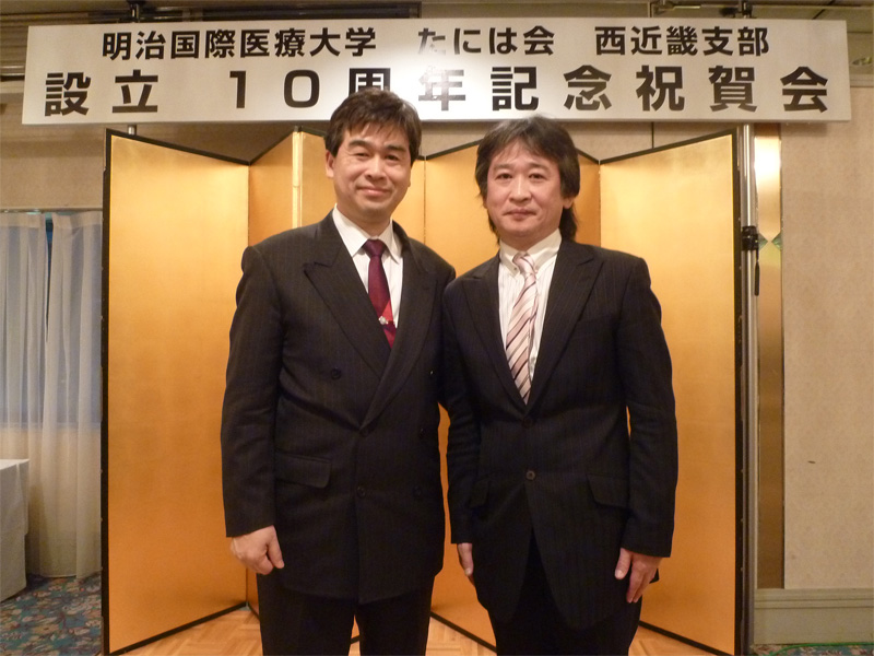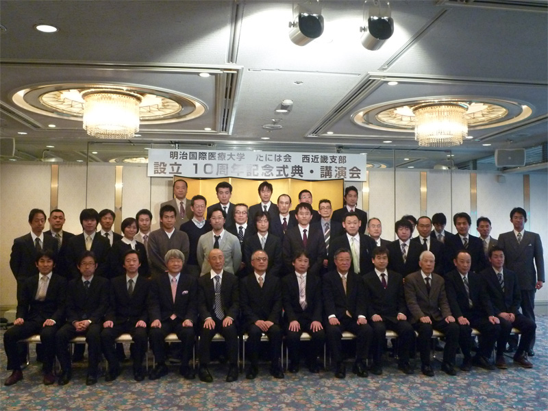 2011年(平成23年)2月6日(日)に、大阪府大阪市淀川区にある新大阪ワシントンプラザホテルにおいて、明治国際医療大学鍼灸学部同窓会「たには会」西近畿支部設立10周年記念式典、記念講演会及び祝賀会が開催されました。西近畿支部は、大阪、和歌山、兵庫に在住する卒業生で構成されています。大阪には、大学と姉妹校の明治東洋医学院専門学校があり、大学がある京都が隣接していることもあり、西近畿支部は全国にある8支部中最大規模の会員数を誇ります。近畿圏のみならず、多くの都府県より卒業生や恩師が駆けつけ、盛大な式典が執り行われました。 |