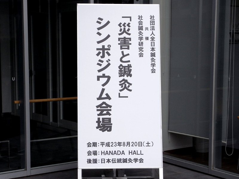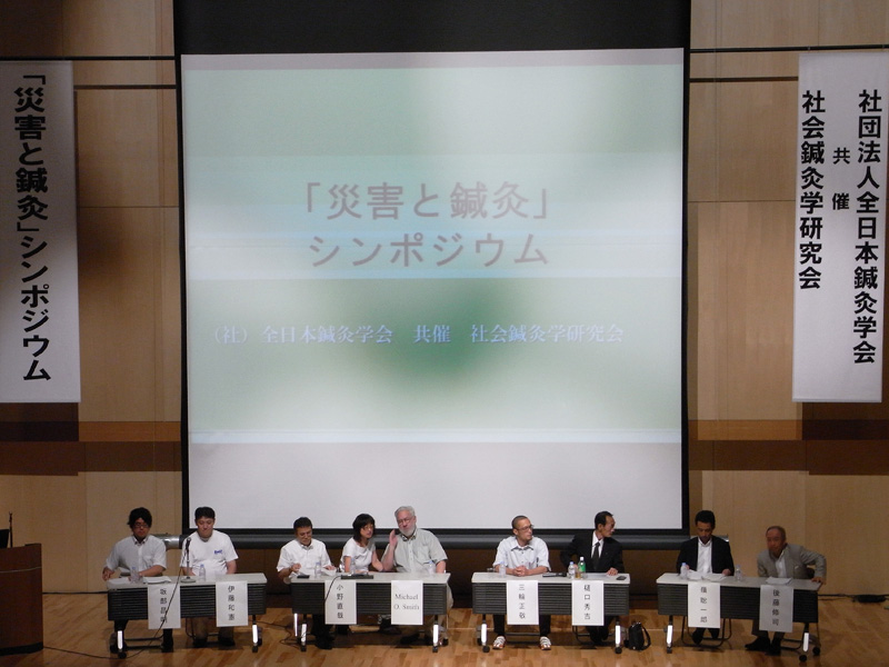 2011年(平成23年)8月20日(日)に、東京都江東区有明にある有明医療大学において、(社)全日本鍼灸学会と社会鍼灸学研究会共催の「災害と鍼灸」シンポジウムが開催されました。今シンポジウムは、東日本大震災での医療活動において、鍼灸医療が果たした役割を検証する意味合いで企画されました。海外より招聘された医師より、大規模災害時における心的障害に対し、鍼灸治療が実際に提供されている事例が多数紹介されました。また、アメリカの軍隊ではPTSDに対して鍼灸治療が効を奏している例や東日本大震災の被災地で心的障害に陥った肩に対して鍼灸治療が有効であった例などが話し合われました。鍼灸治療は、急性症状に対しとても有効な医療です。また、精神障害に対しても有効な医療です。災害時に有効な医療として国民にアピールすることの大切さを、出席者一同確認し合っていました。 |