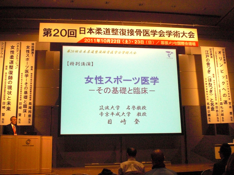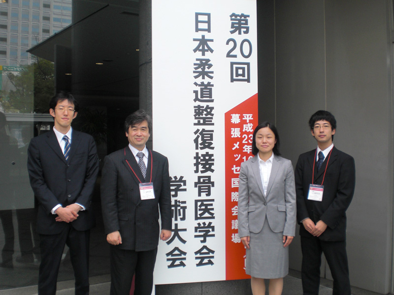 2011年(平成23年)10月22日(土)・10月23日(日)に、千葉県幕張市にある幕張メッセにおいて第20回日本柔道整復接骨医学会学術大会が開催されました。「柔道整復とスポーツ医学」をテーマに、柔道整復術が広範囲な医療現場で用いられていることが話し合われました。当院は、毎年「徒手整復術の適応と限界」をテーマに、発表を行っています。10年連続となった今回は、肩関節内の脱臼と骨折が同時に発生した難治性の高い症例を演題と致しました。当院を代表して、山田昌紀副院長が発表しました。 |