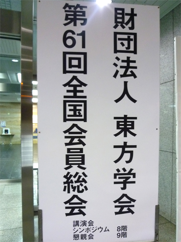 2011年(平成23年)11月4日(金)に、第61回東方学会全国会員総会が、東京都千代田区にある日本教育会館において開催されました。財団法人東方学会は、1947年(昭和22)年6月24日に創立され、東方諸国の歴史・社会・経済・民族・思想・哲学・宗教・文学・言語・芸術・考古等にわたる研究領域を包括している学会です。現在、わが国における唯一のアジア研究総合学会へと言えます。中国哲学やインド哲学と鍼灸医学との関連を探求しました。 |
