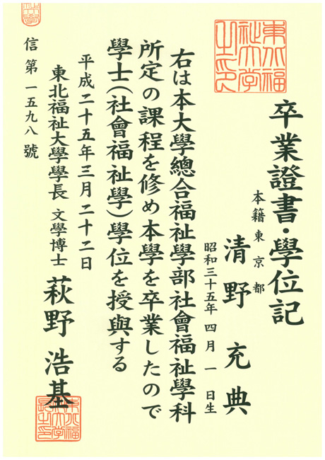 2013年(平成25年)3月22日(金)に、仙台市にある東北福祉大学で卒業式および学位授与式が行われました。 |
