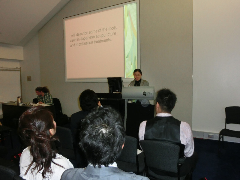 2013年(平成25年)11月1日(木)〜5日(火)に、オーストラリア・シドニーで行われた第8回世界鍼灸学会連合会(WFAS)学術総会に参加したあと、シドニー市内にあるオーストラリア国立シドニー科技大学内の伝統医学専門クリニックを訪問しました。 このクリニックは、基本的に学生の研修施設です。常勤のスタッフがおり、学生の指導に当たっています。来院患者さんには、主に鍼灸治療、薬草治療(漢方薬治療)、マッサージ治療(推掌)を行っています。オーストラリアにおける鍼灸治療の実情を話し合い、臨床現場も拝見しましたが、日本の鍼灸治療が広く知られていることを実感し、オーストラリアのレベルが高いことが分かりました。歴史が浅い分、柔軟に色々な国の治療方法を取り入れていたことから、今後東洋医学分野における体制が大きく発展するのではないかという予感を持ちました。 |