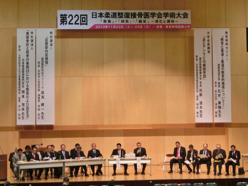 2013年(平成25年)11月23日(土)24日(日)に、第22回日本柔道整復接骨医学会学術総会が行われました。 清野鍼灸整骨院は、「徒手整復法の適応と限界」をテーマとして、12年連続の発表しました。南波利宗先生が「仙骨骨折」をテーマに2年連続の発表を行いました。演題内容は、仙骨骨折の癒合期間に関する内容です。このテーマにおける和文・英文は過去にありません。今回の発表により、仙骨骨折に対応するすべての医療従事者にとって、1つの基準を示すことが出来たと思います。 |