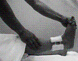 初診(12月18日)整復時の写真。脛骨下端の後方にある骨片を、前方に押し上げる。 |