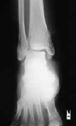 現病歴:平成14年12月9日午前12時頃、外出先で階段を下降中に段を踏み外し、2段下まで落下、右足首を捻り転倒した。直後より足に激痛を覚え、歩行不能となった。