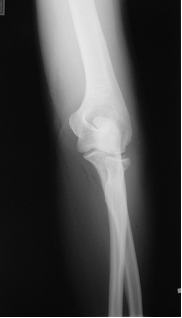 固定する。 前腕回外位、肩関節30度屈曲位に固定。