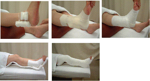 中 テープを用いた患部の固定(足関節底屈10°)
