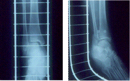 fell while walking and suffered injury to her right leg. An X-ray examination