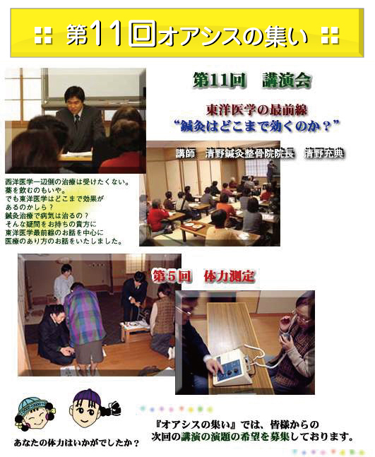 第11回 講演会「東洋医学最前線」 〜鍼灸はどこまできくのか!? |