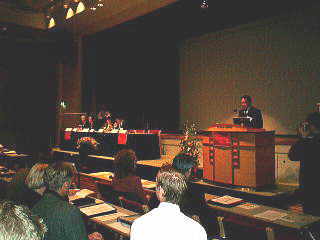 | 2003年度世界鍼灸学会連合会(WFAS)の国際シンポジウムが2003年(平成15年)9月12日(金)から15日(日)まで三日間、ノルウェー・オスロのコングレスセンターで開催されました。参加者は21カ国324名で主な内訳は、ノルウェー182名、中国58名、イタリア14名、日本、イギリス、ドイツが各9名でした。北欧の中で、ノルウェーは東洋医学に対する関心が高い国です。鍼灸治療を研究している多くの医療関係者が参集しました。日本の方式に強い興味を示す人が多く、フロアーで沢山質問を受けました。今大会は、「鍼のエビデンス・安全性と適応」をメインテーマにさまざまな研究発表が行われました。日本からは、私を含め4題の発表がありました。 | |